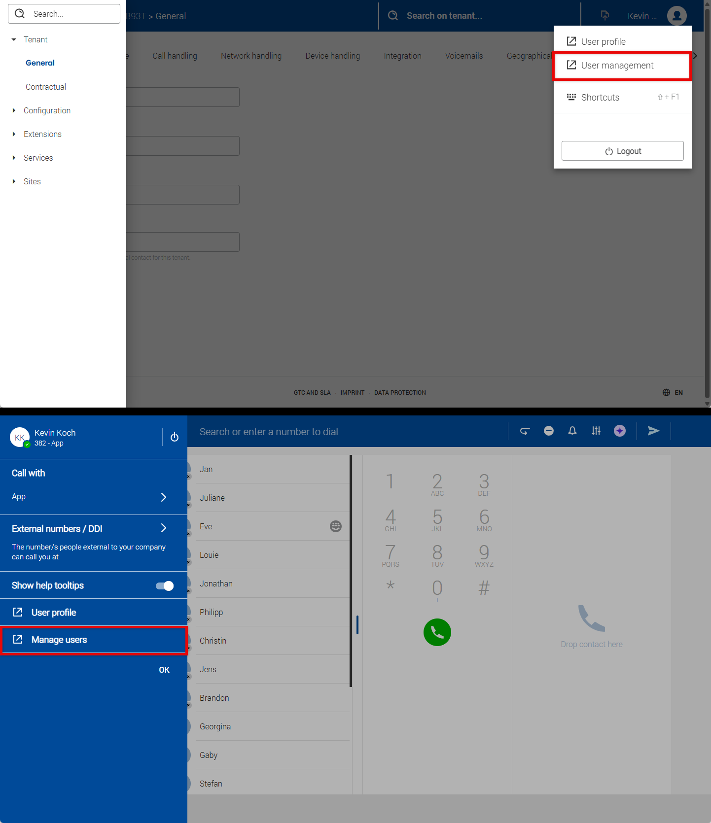 Click on Manage users (Web/Desktop app)/User management (Admin Portal).