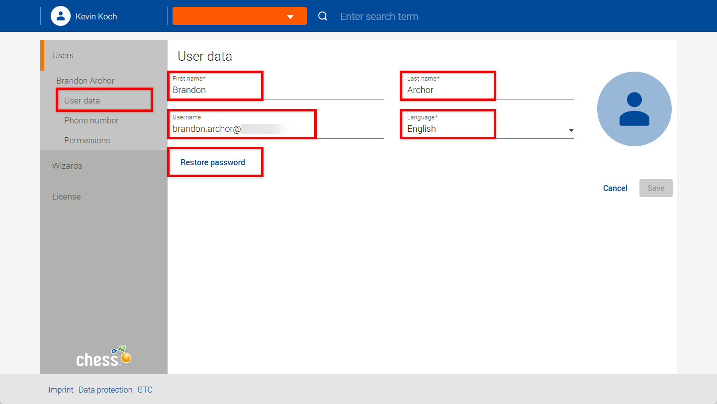 In the User data tab, you can: