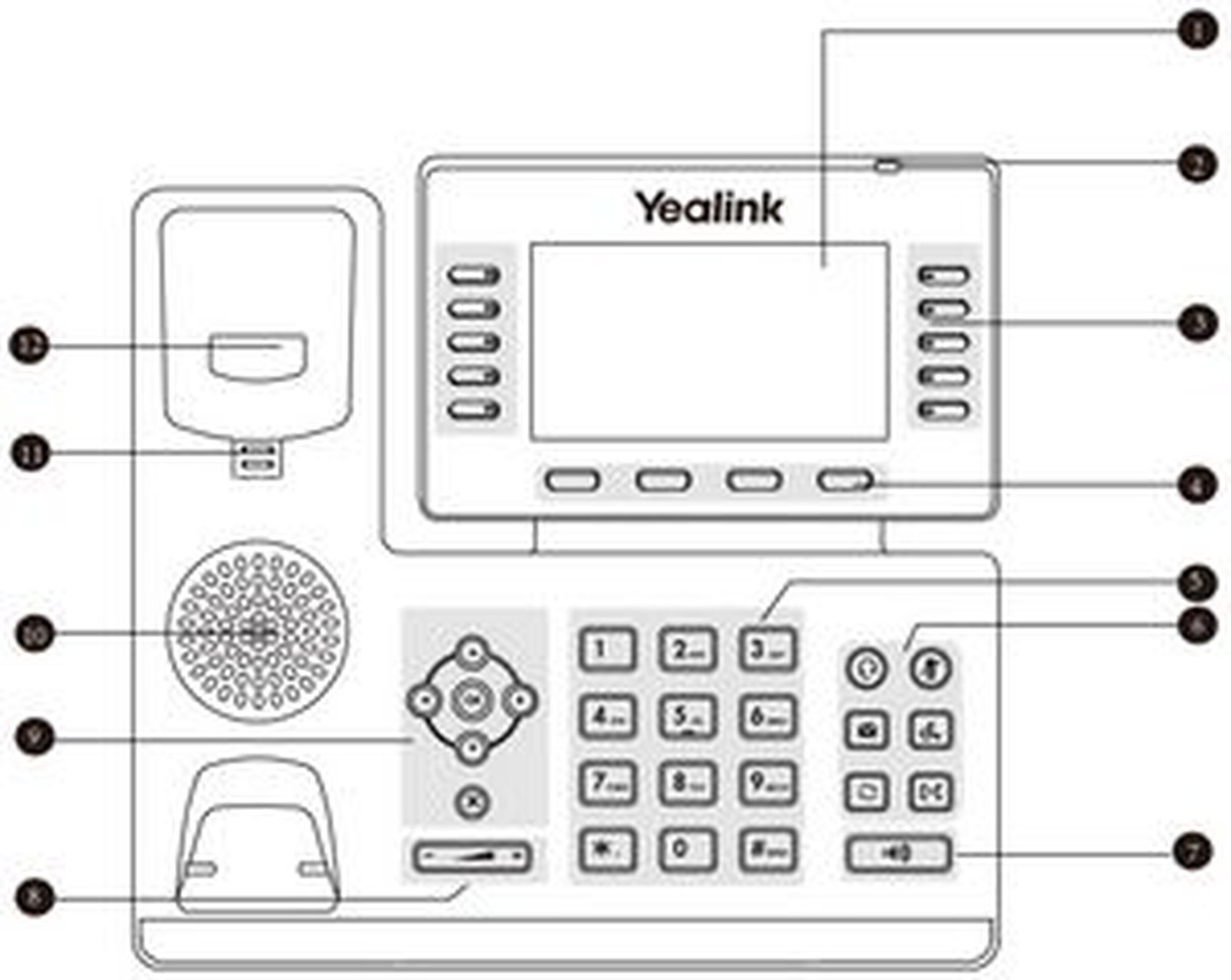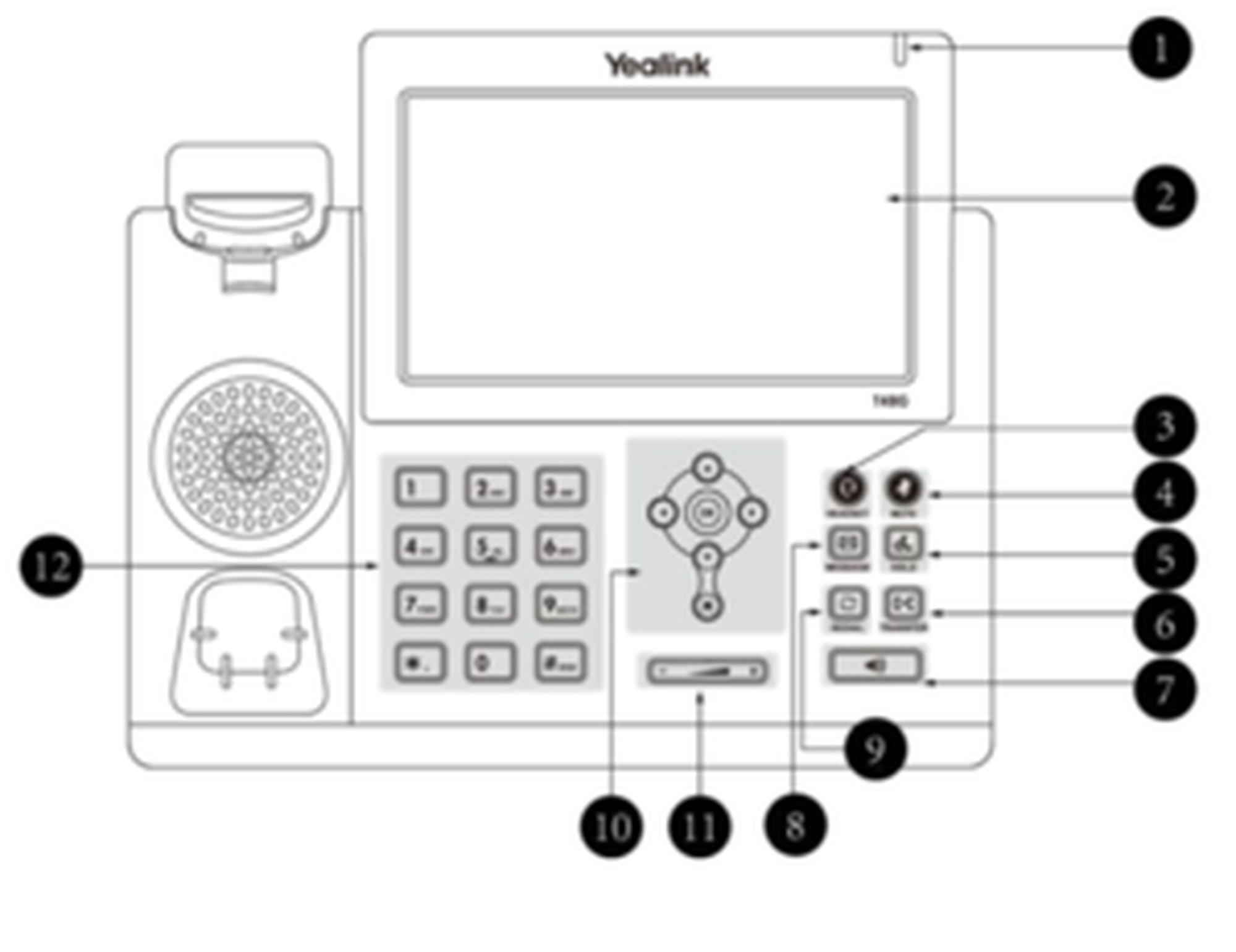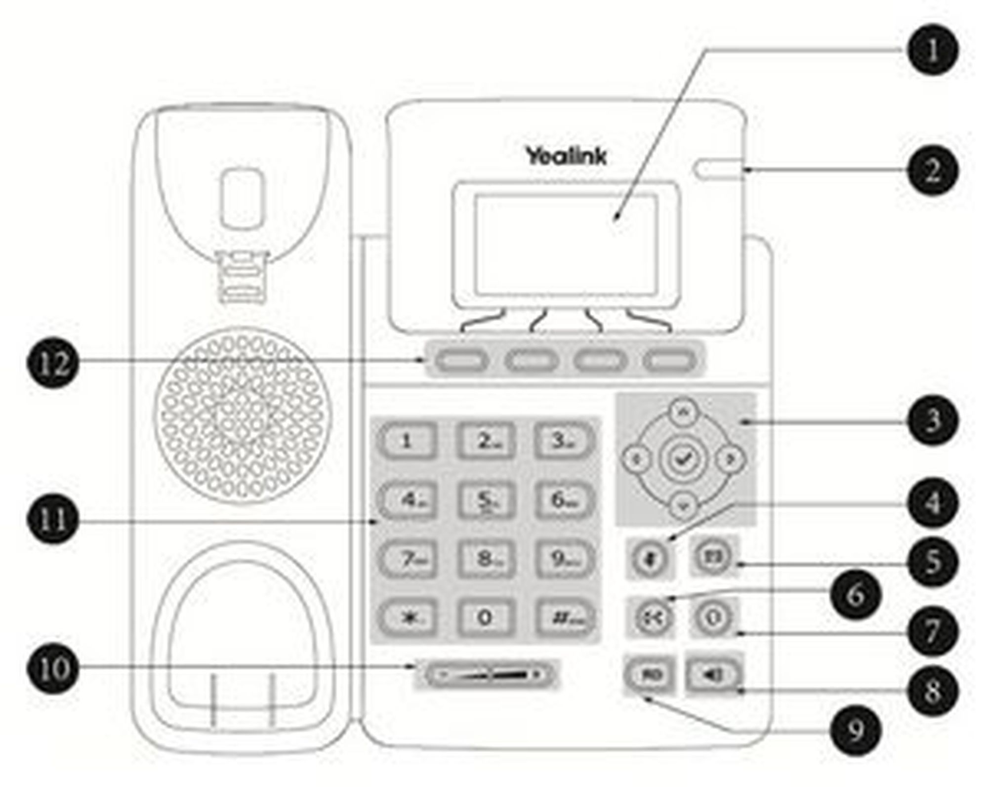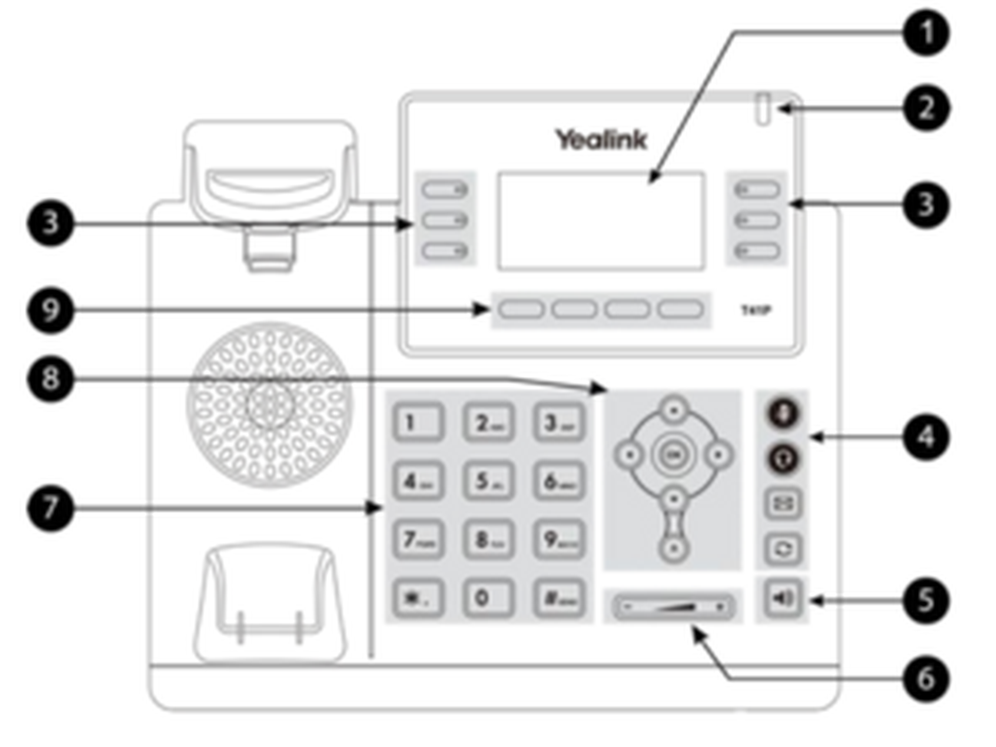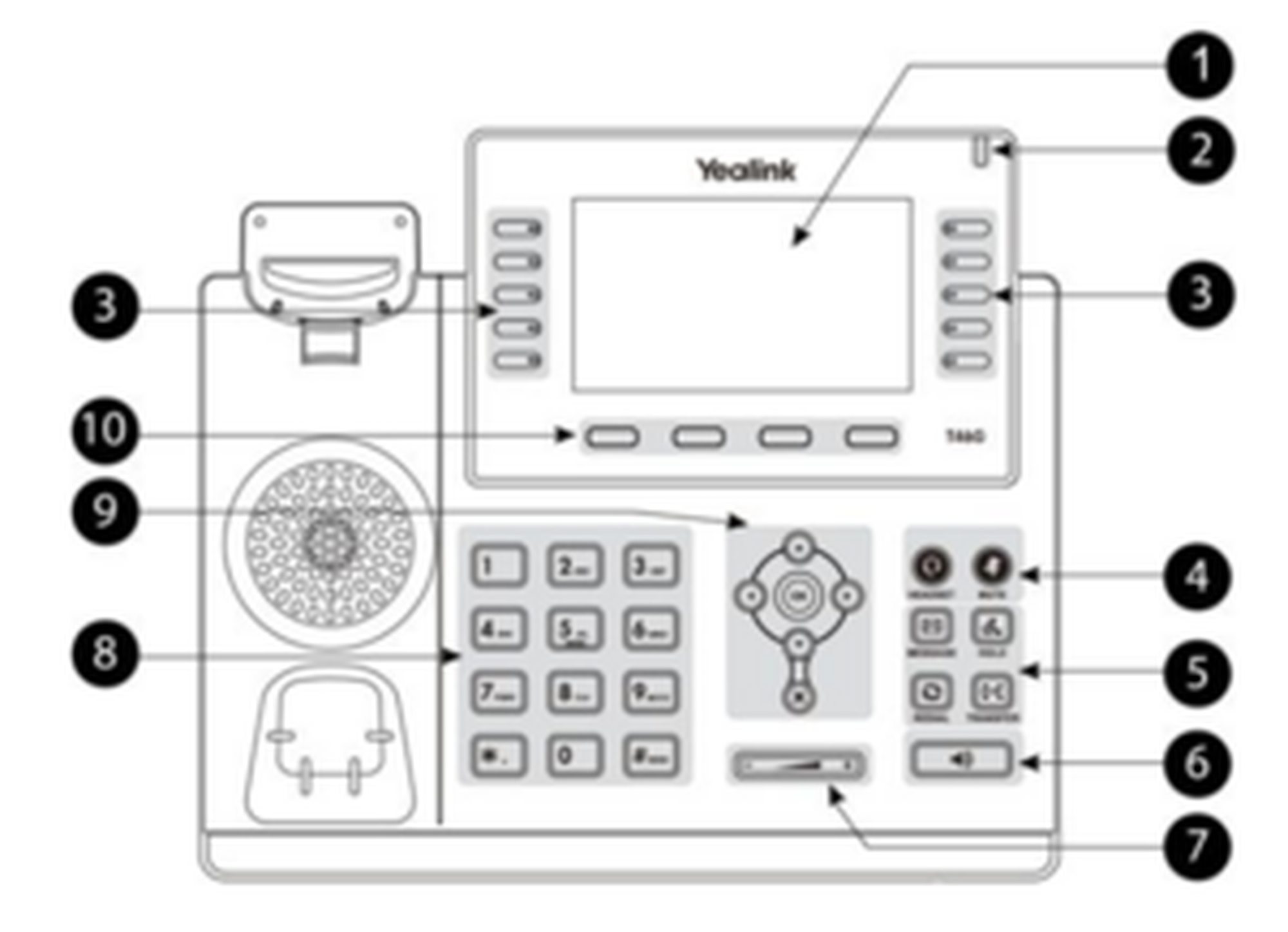 | 6 | Headset and mute key, keys for voicemail, redialing, hold and call forwarding |